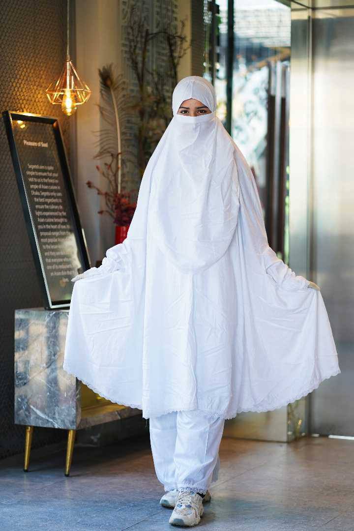 White Plazzo with Khimar Set 02